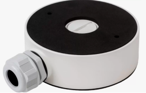 Монтажная коробка, белая, для купольных камер, алюминий, 120?37.2мм, с одним кабельным вводом PG. На задней крышке вырезано отверстие для подвода проводов, закрытое заглушкой с резьбовым соединением. Крепеж сделан из алюминиевого сплава, выкрашенного белой порошковой краской.